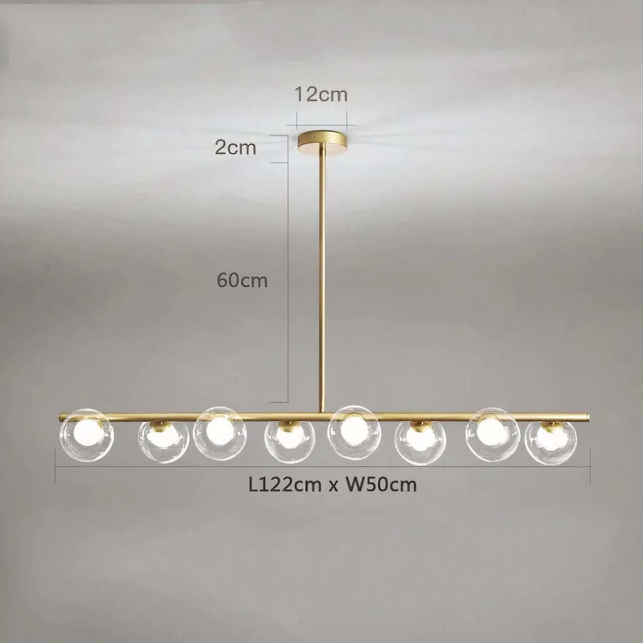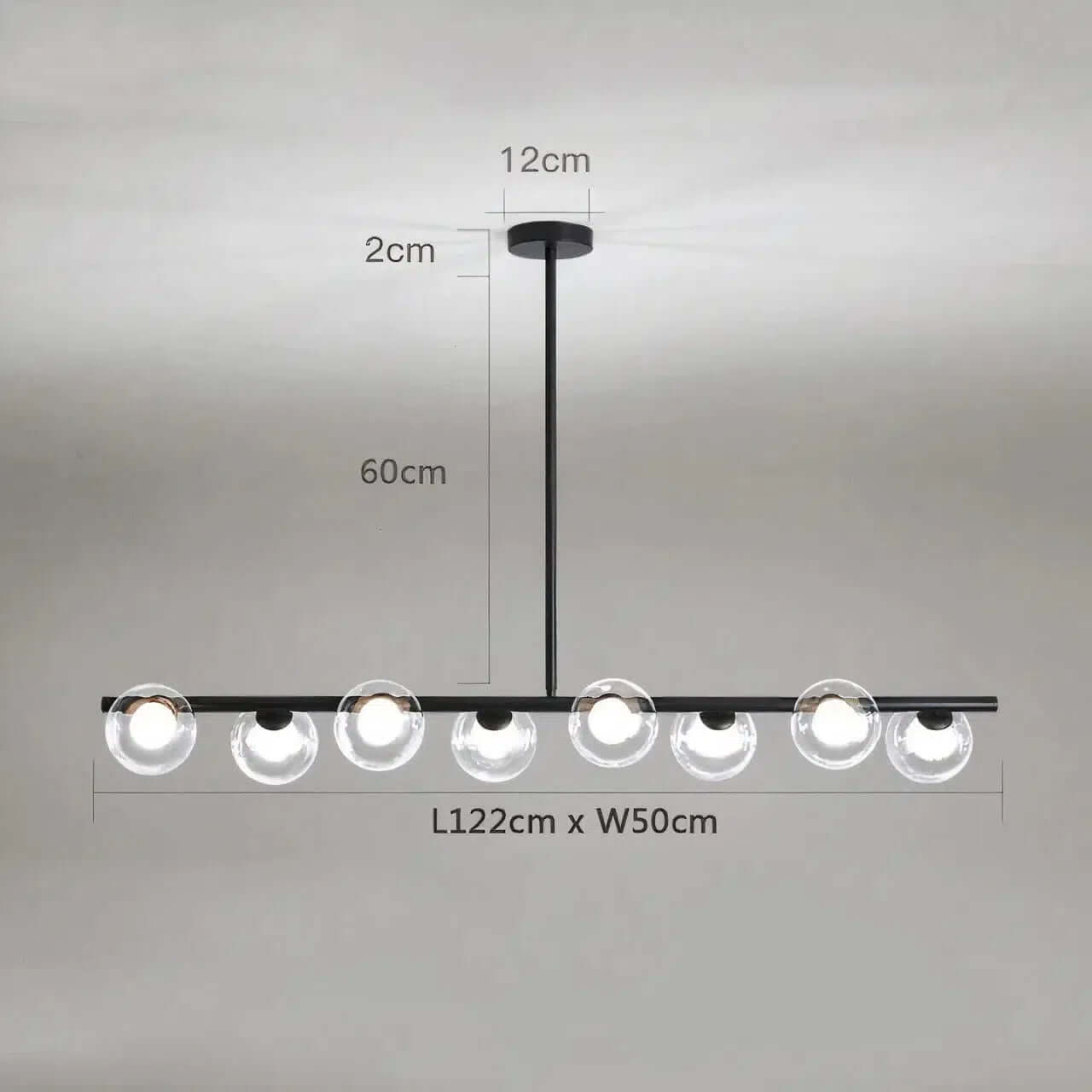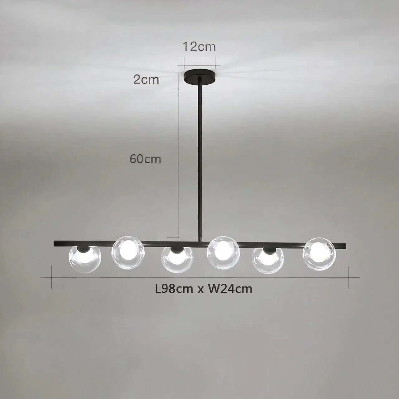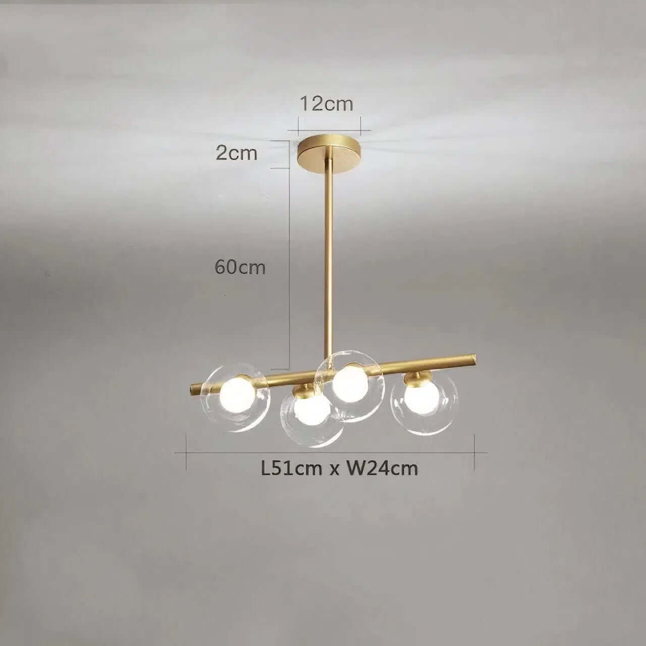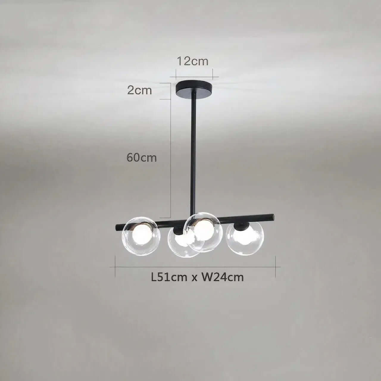 The Audree chandelier, a Siena exclusive, features an iron bar that holds spherical, transparent bulb domes. This modern fixture is certain to bring a contemporary element to any space, providing bright light and a bold but simplistic approach to lighting decor. Available in black or gold, and with different lighting and size options.