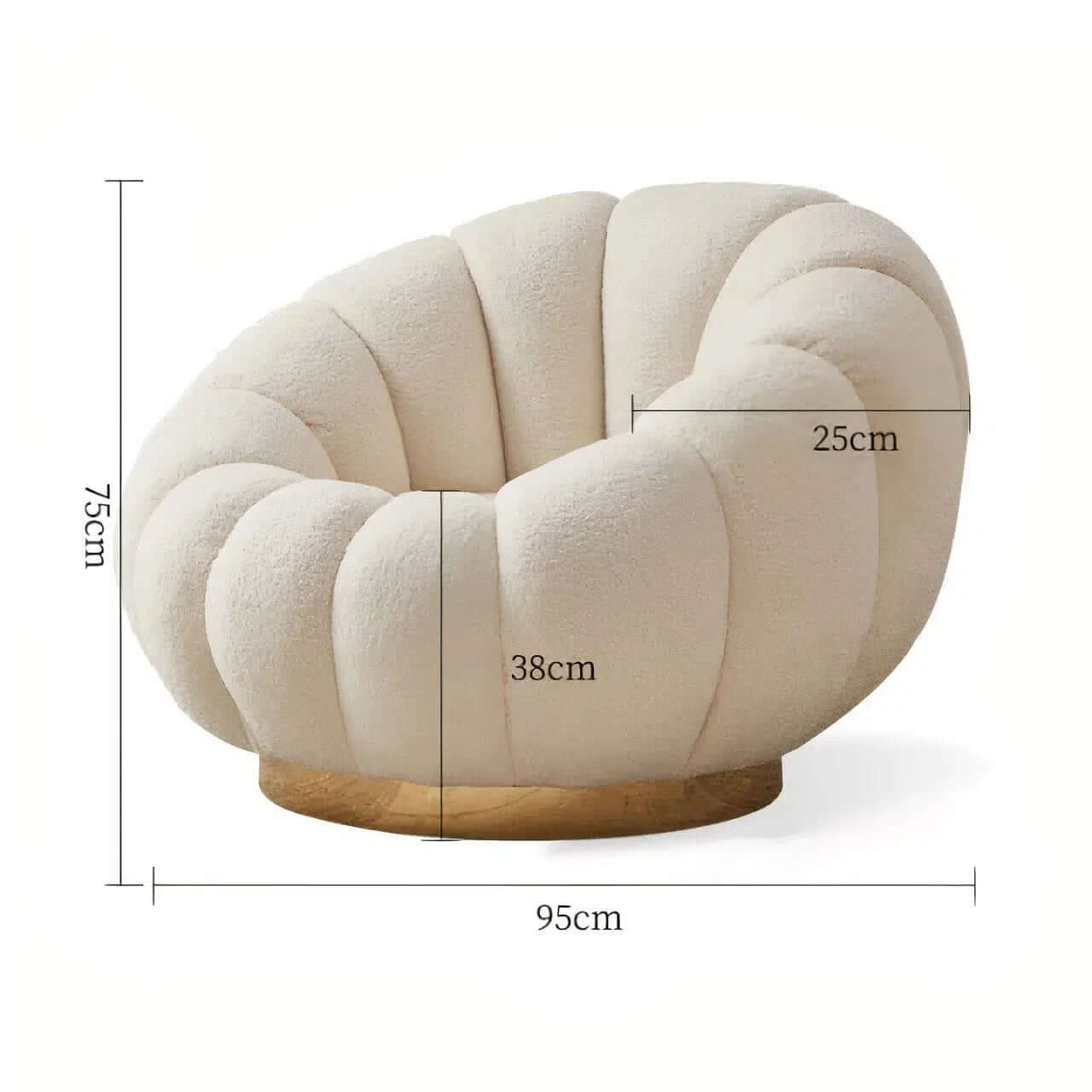 Pairing comfort with luxury at its finest, this piece is donning a pleated circular design that is both inviting and appealing. Coming in a gorgeous cream tone, this boucle chair is certain to become the place of zen in your living area. Pair it with a matching ottoman for a complete look and maximum comfort.