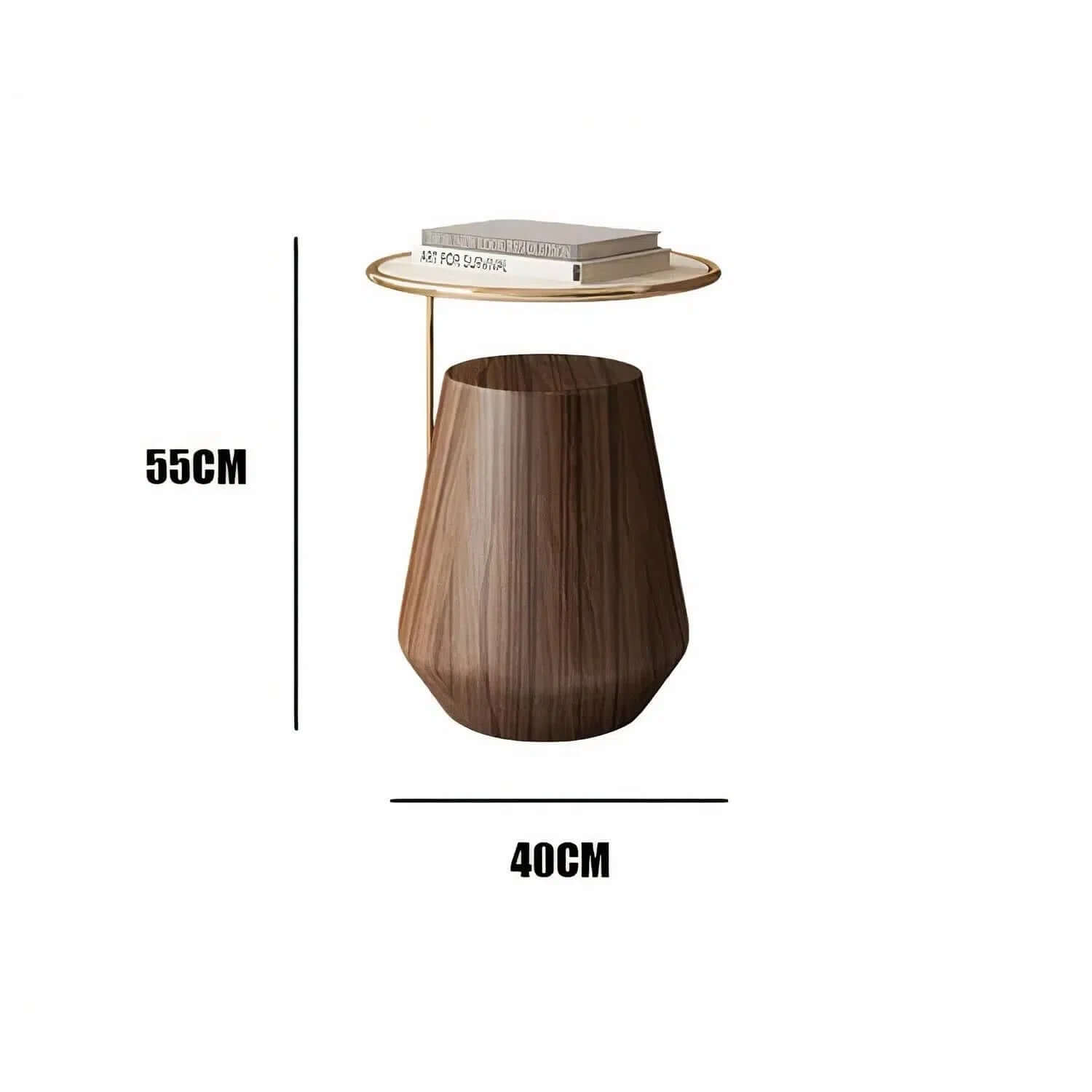The Mae side table features a luxuriously gold-frame table top above a sturdy, pedestal-like stand. The delicate yet sturdy gold stand, together with the shadows cast by its top, creates the impression of the table floating over its pedestal for a stunning unique design.