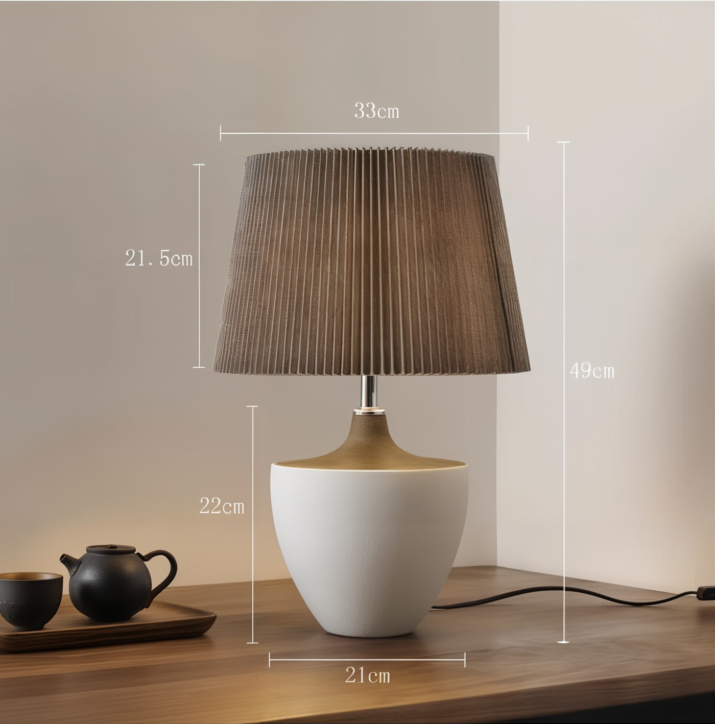 Embrace the serene elegance of the Mika Table Lamp, a harmonious blend of Japanese wabi-sabi aesthetics and European minimalist design. Crafted from natural pottery, this lamp showcases an organic form that celebrates simplicity and the beauty found in imperfection. Its subtle textures and earthy tones add a timeless charm to any bedroom, living room, or hotel interior. The sturdy iron body provides a sleek contrast, enhancing the lamp's understated appeal. Emitting a warm, ambient glow, the Mika Table Lamp fosters a tranquil atmosphere that complements both contemporary and traditional décors.