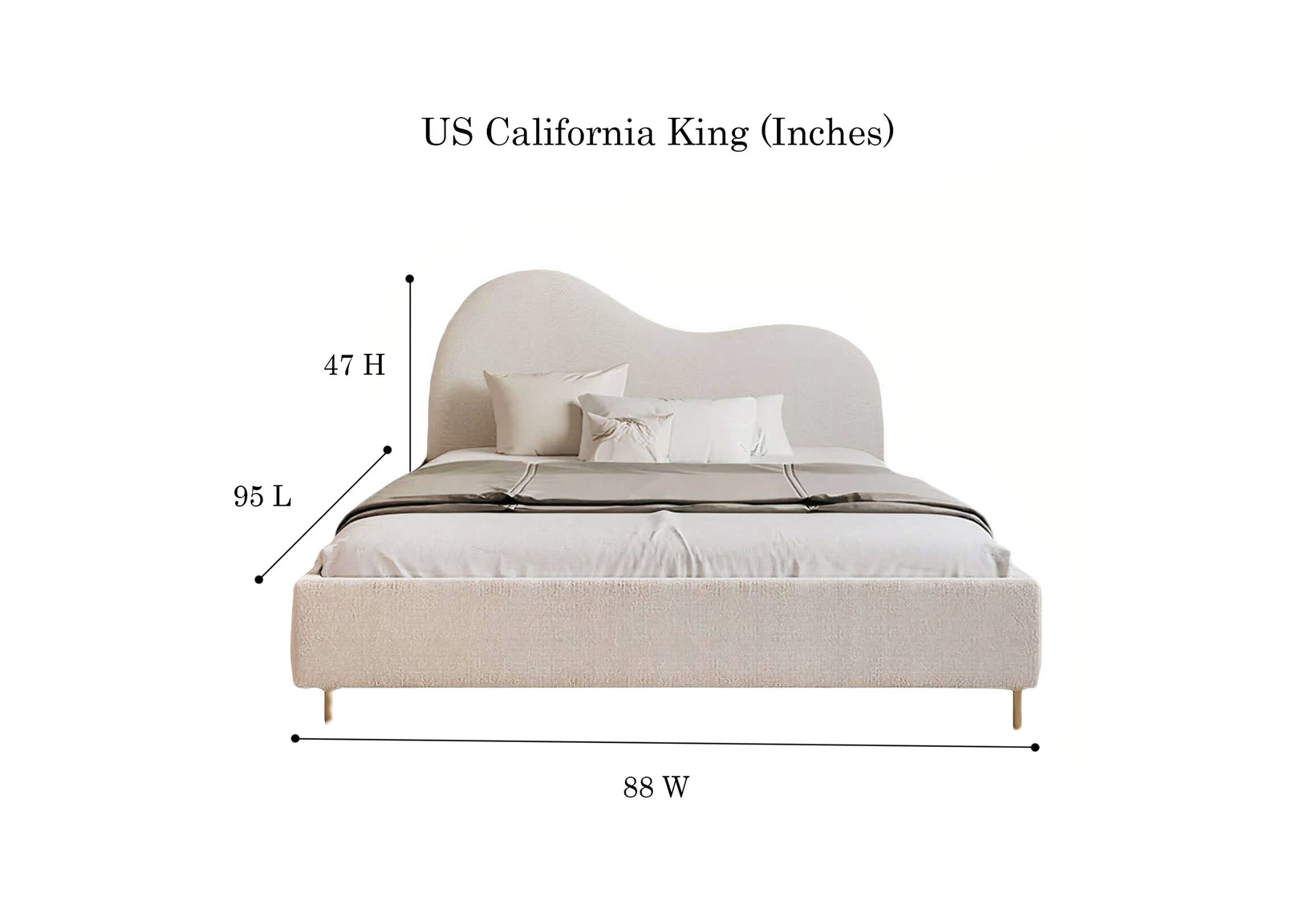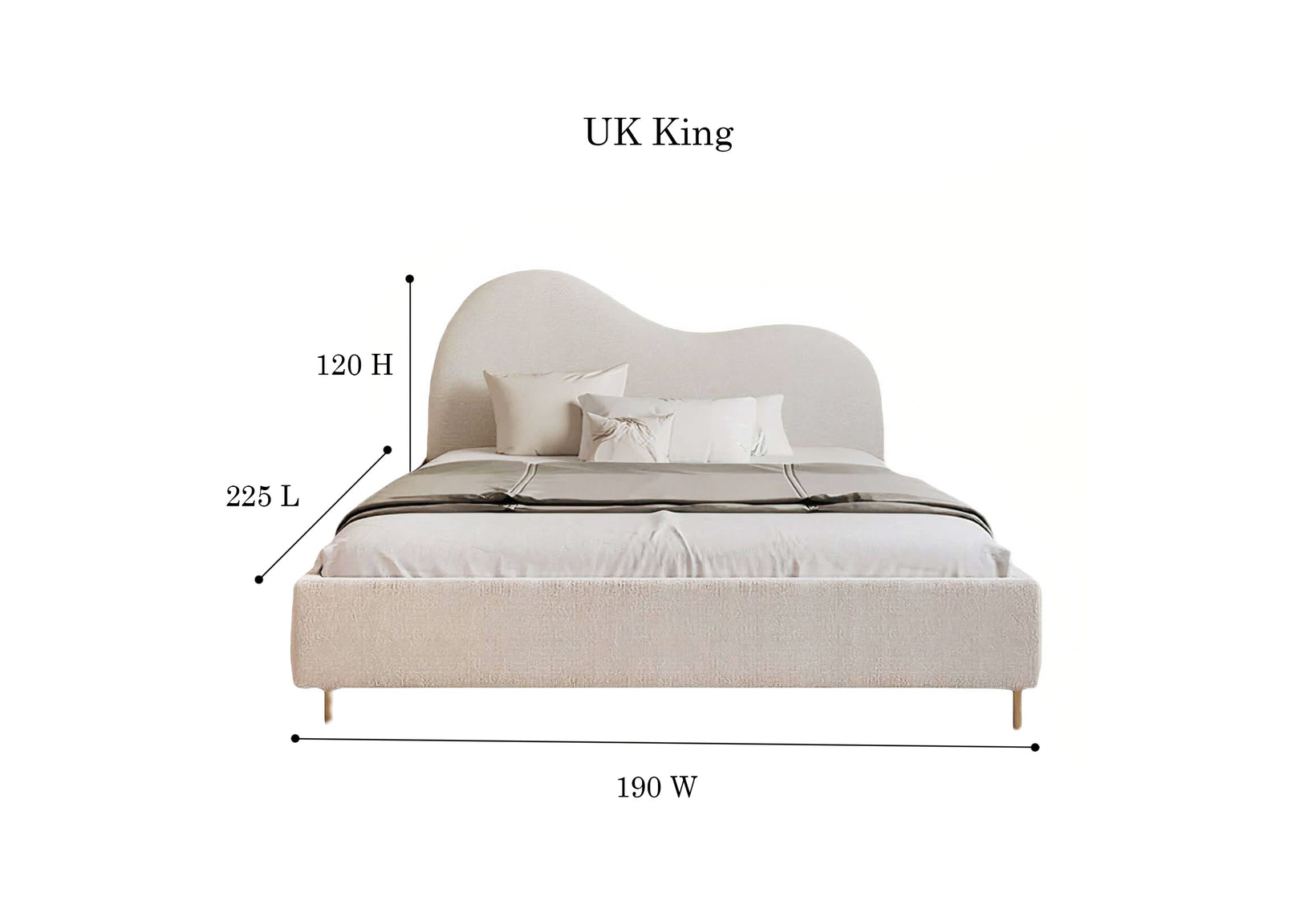 Keep your head in the clouds with theMyra bed. Upholstered in a soft boucle fabric, with minimal wooden feet and gentle curves for a dreamy, floating effect. A simple design with a graceful presence, made to to be the focal point of your bedroom to ground your sleeping space.